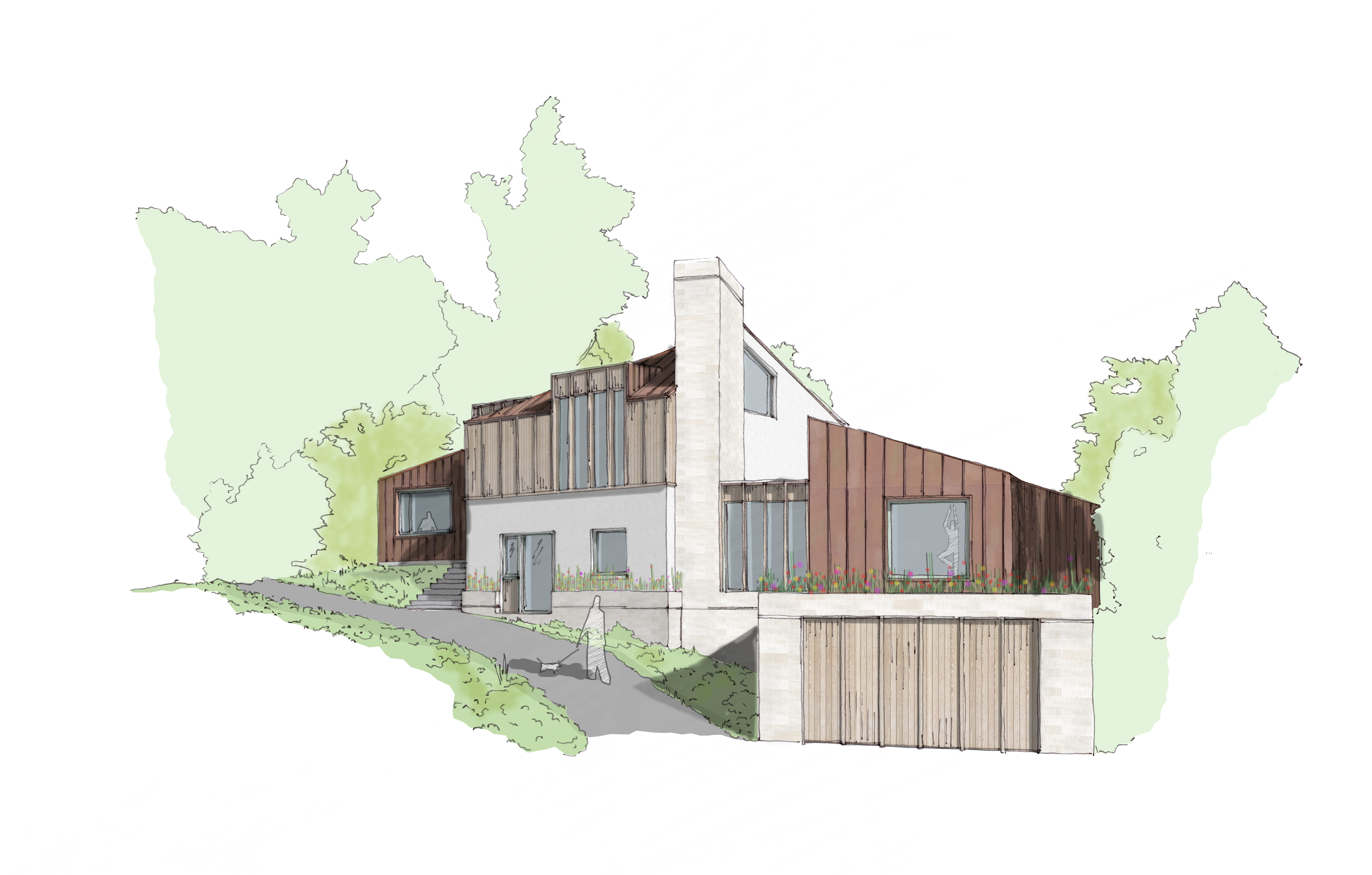 The existing house was generously proportioned and on an unusual stepped site, but was of a poor build quality and, despite it being less than 40 years old, the owners were contemplating full demolition (a fate that had already befallen some neighbouring houses).